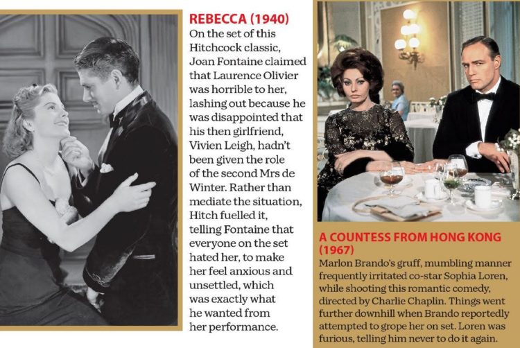 Also featured are Marlon Brando and Sophia Loren in A Countess From Hong Kong (1967), and Olivier – again! – at odds with Joan Fontaine in Rebecca (1940.)