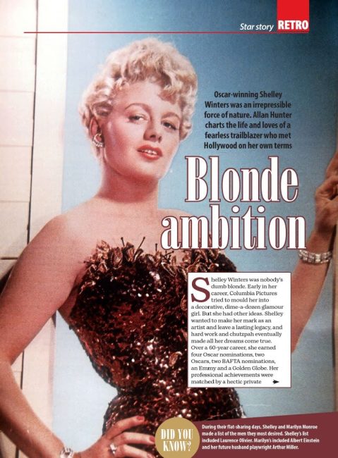 And finally, this month’s Yours Retro also features a profile of Shelley Winters, who began her career in the blonde bombshell mould and became an Oscar-winning character actress. She wrote two candid memoirs, and was a fixture on the TV chat-show circuit. But while some of Shelley’s stories were exaggerated, her friendship with Marilyn – from their starlet days to the Golden Globes – seemed warm and genuine.
