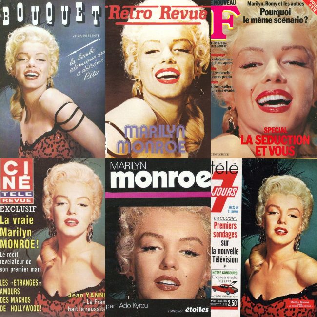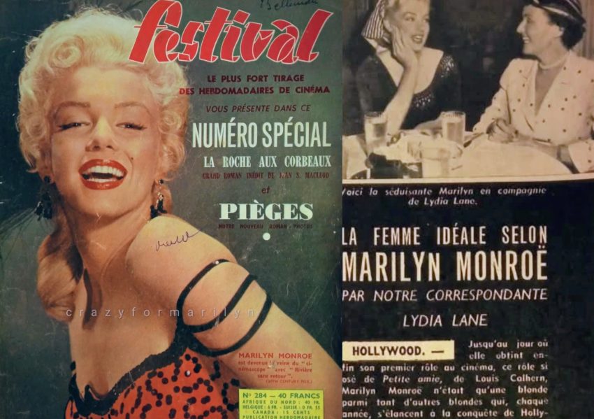 As noted on the Crazy for Marilyn Instagram page, a colour photo from the same session graced the cover of another French magazine, Festival, back in December 1954 – with Hollywood correspondent Lydia Lane chatting to the star inside. And there’s more – although two of the cover images shown below were flipped (notice Marilyn’s beauty mark on the wrong side!