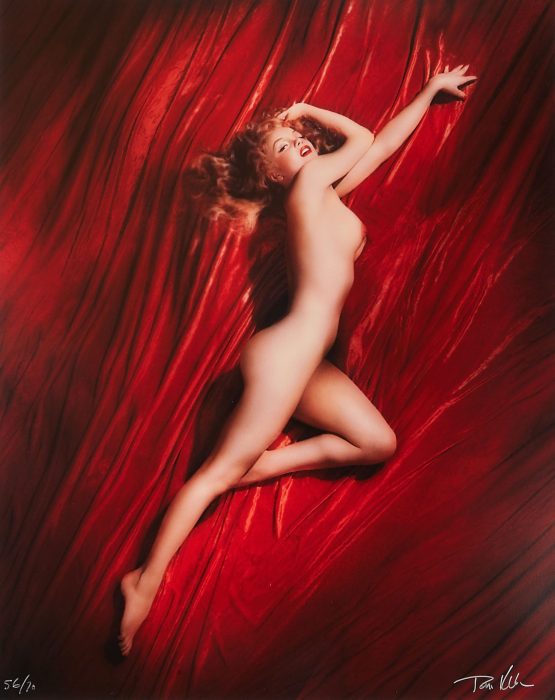 And finally, ‘A New Wrinkle‘ – Marilyn’s 1949 nude calendar pose for Tom Kelley, in an oversize print signed by the photographer’s son and archivist, Tom Kelley Jr., in 2021.