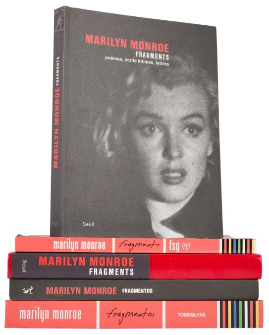 A group of five first editions of Fragments, the 2010 anthology of Marilyn’s letters, notes and poetry in English, French, Spanish and Portuguese.