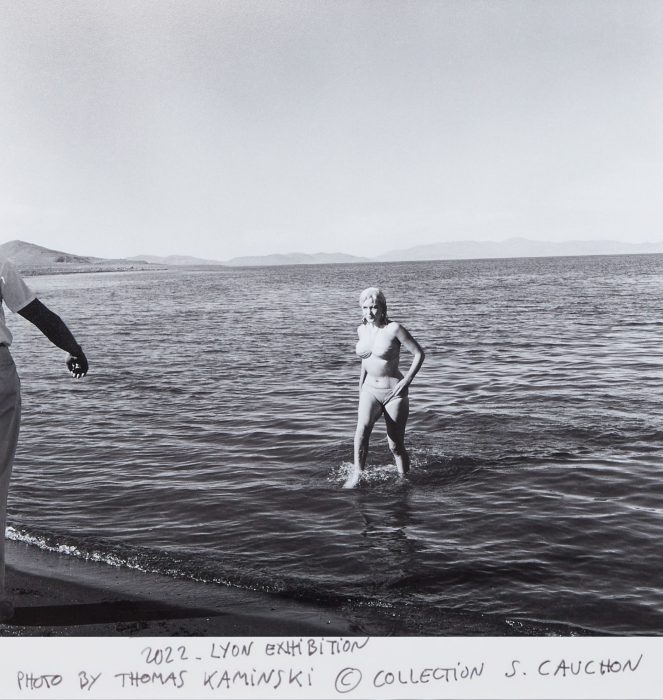 A photograph of Marilyn on location for The Misfits at Pyramid Lake, Nevada in 1960, taken by Thomas ‘Doc’ Kaminski. This 2022 print is from the collection of French author and film historian Sébastien Cauchon, and was displayed as part of Marilyn Monroe 1962, an exhibition he curated in Lyon on the 60th anniversary of Marilyn’s death.