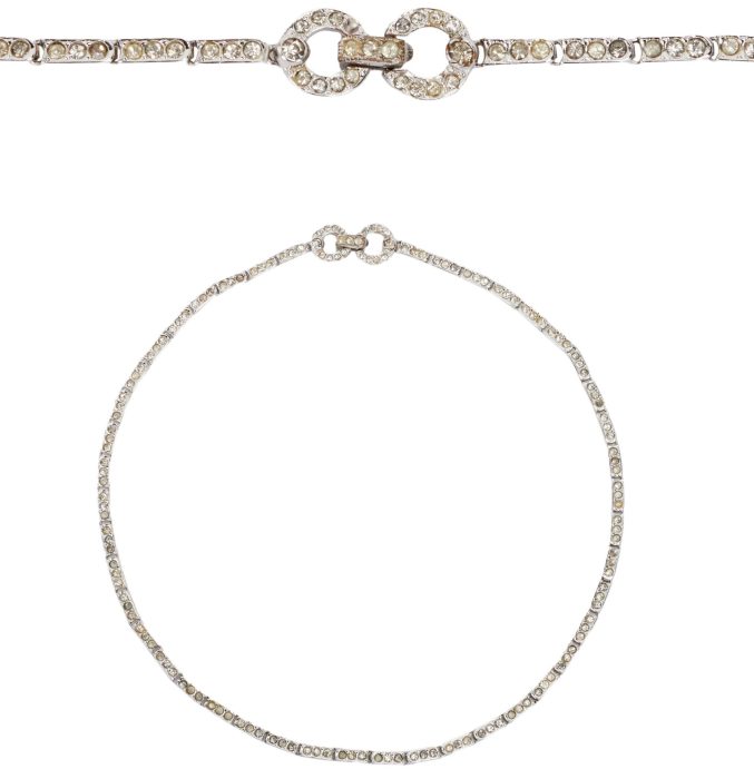 A 1950s rhinestone choker marked ‘Trifari’ on the back.