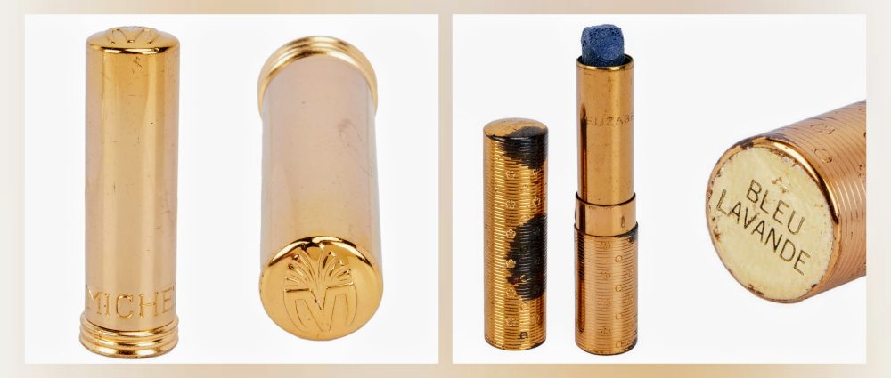At right: a blue eyeshadow by Elizabeth Arden, labelled ‘bleu lavande.’ Marilyn was a regular patron at Arden’s Fifth Avenue salon during her New York years.