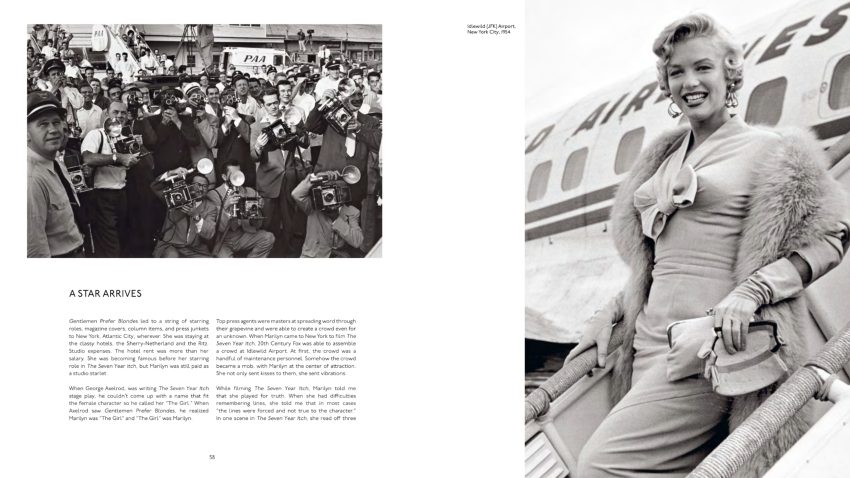 Marilyn wore a fitted cream dress designed by Travilla for There’s No Business Like Show Business, and Shaw’s images of her greeting reporters at Idlewild Airport (now JFK) earlier that day are featured in a forthcoming book, Dear Marilyn, due for release on September 30.