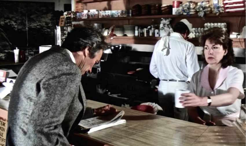 After leaving, Eastwood spits out the coffee and returns to complain. Confronted by the gunmen, he shoots three – and when the fourth holds a gun to Corday’s head, he utters the immortal line: ‘Go ahead, make my day.’