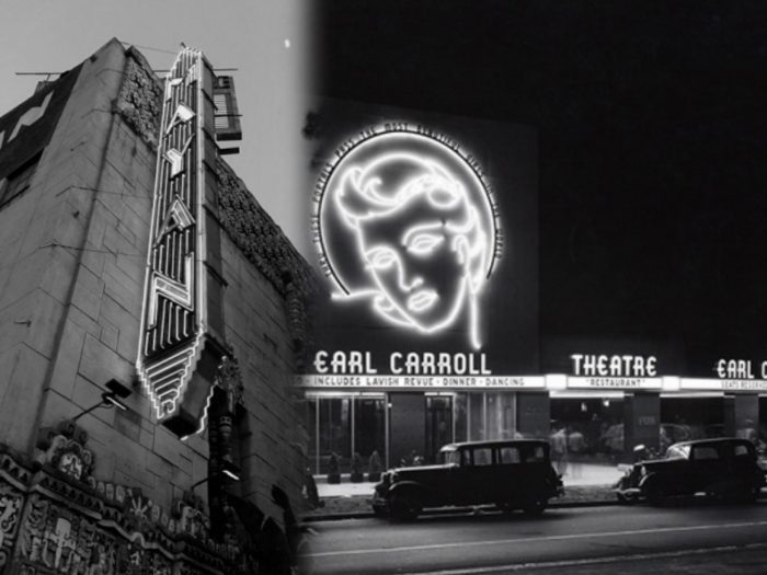 Perhaps unsurprisingly, these locations were also visited by another young woman who would later find fame in Hollywood. In 1945, Norma Jeane Dougherty’s first wedding reception had been held at the Earl Carroll Theatre on Sunset Boulevard; and three years later, under her new name of Marilyn Monroe, she went to the Mayan Theatre with photographer Bruno Bernard to study burlesque dancers, in preparation for her first lead role in Ladies of the Chorus.