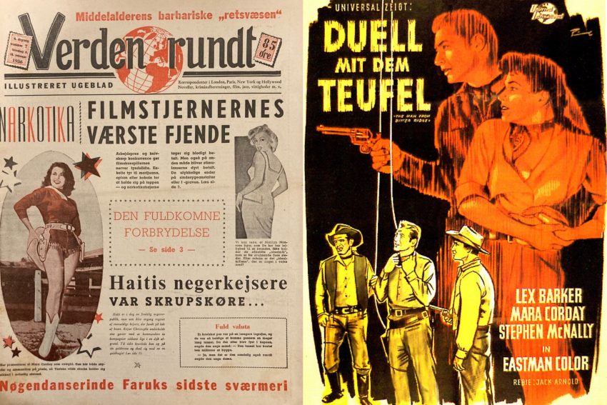 By 1955 Mara was second only to Monroe as the US Armed Forces’ favourite pin-up, according to the Boston Globe. In an interview for Picturegoer – with a cover shoot by Bruno Bernard – she admitted having ‘just missed being another Marilyn.’ In 1956, they were both featured on the cover of a Danish news weekly, Around the World.
