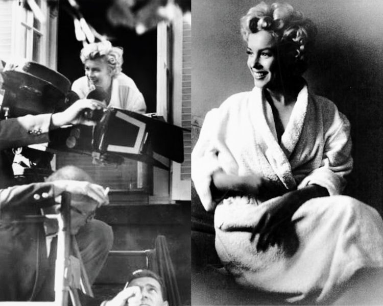 He was also among the press pack two days earlier, when Marilyn filmed another scene at a brownstone house on East 61st Street, waving from the window to co-star Tom Ewell while blow-drying her hair.