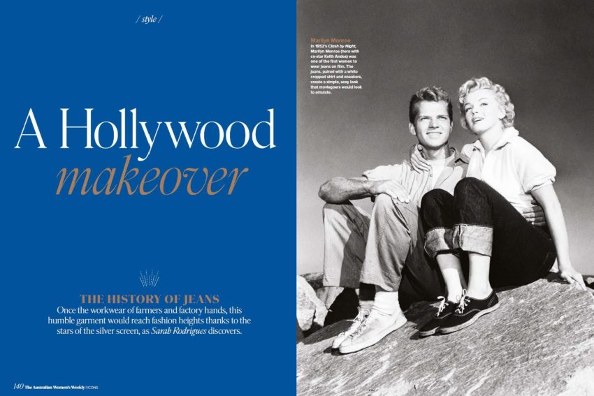 While Marilyn Monroe may have been seen as a dangerous temptress, jeans were now also being worn by other stars, whose appeal was less sexually loaded: Grace Kelly in 1954’s Rear Window, for example, and Audrey Hepburn in 1961’s Breakfast at Tiffany’s.”