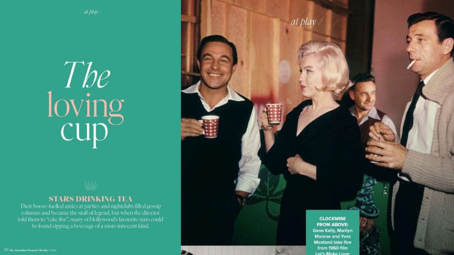 Even if handicraft didn’t take her fancy, Marilyn found other ways to relax on the Let’s Make Love set – such as sipping tea (or coffee) with co-stars Gene Kelly and Yves Montand, as noted in a previous issue of Australian Women’s Weekly Icons, from 2023.