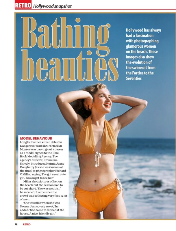 Richard C. Miller’s photo of Marilyn in her yellow string bikini is also featured as part of ‘Bathing Beauties,’ a 3-page layout in the August 2025 issue of UK nostalgia magazine Yours Retro (#91, with Cary Grant on the cover.)