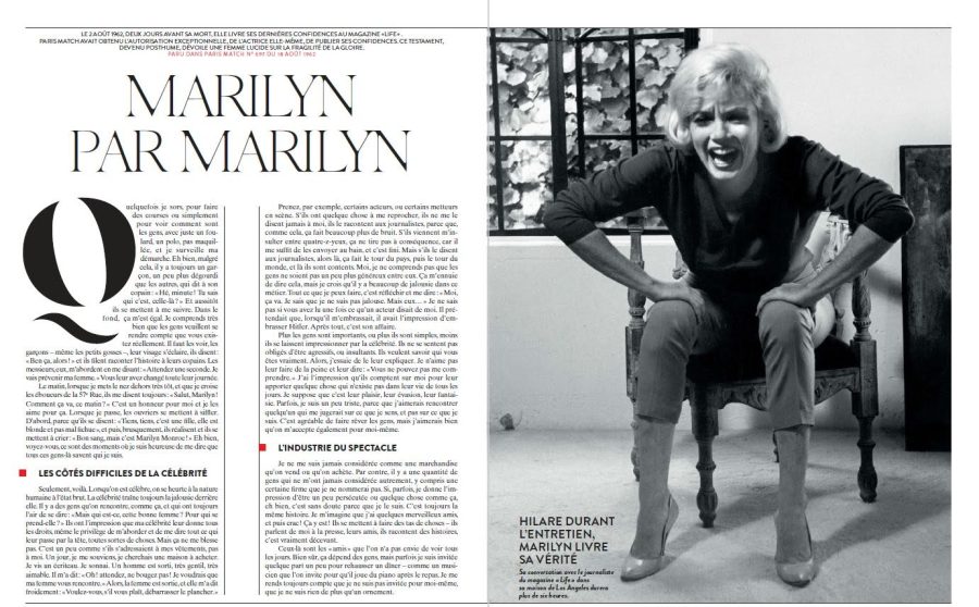 “Why does Marilyn Monroe still fascinate, almost sixty years after her tragic death at the age of 36? Probably because she embodies the American dream as much as its brokenness. From model spotted by chance to global icon, she was at the forefront of women’s liberation. Master of her image to the point of forcing Hollywood studios to bend, she would probably have been an Instagram star today. But behind the blonde goddess hid a fragile woman: failed marriages, repeated miscarriages, an addiction to barbiturates … This duality between her public aura and her private fragility resonates with our era of social media. Her mysterious death on August 4, 1962, fuels the myth. Marilyn remains a contemporary mirror: a star sacrificed on the altar of celebrity, she prefigures our current obsessions with the perfect image and toxic fame.”