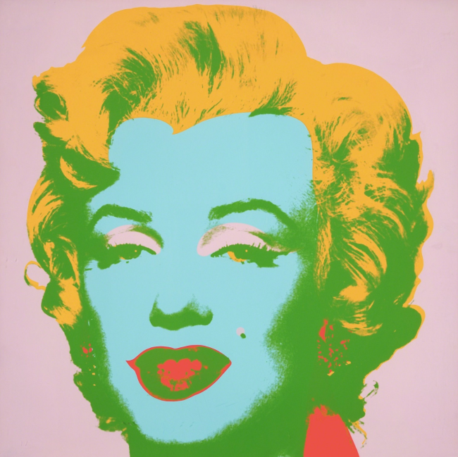 Warhol added crop marks to the photo in process, removing Marilyn’s face from her body. His lavish use of colour disrupts the artifice of Hollywood glamour, transforming Marilyn’s parted lips and half-closed eyelids into facets of a modern enigma.