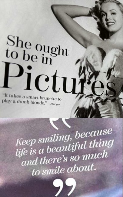 All of this is rehashed in The Private Marilyn, alongside a number of erroneous – and possibly fake – quotes. Parade has a long history with Marilyn Monroe (see here), so it’s disappointing that they haven’t given her a better tribute.