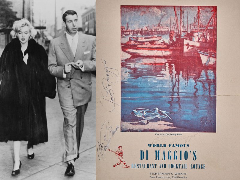 In the early days of their marriage, Marilyn stayed at Joe’s family home in San Francisco. A menu from DiMaggio’s Restaurant on Fisherman’s Wharf, signed by both Marilyn and Joe, sold for $21,420.