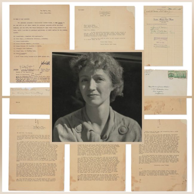 6) A letter from Grace McKee to the Santa Monica Rest Home, dated April 19, following her fiancé Erwin ‘Doc’ Goddard’s attempt to collect Gladys’ possessions on the previous day. She also mentions having recently been appointed as legal guardian to both Gladys and Norma Jeane, and alludes to money problems and drug misuse as underlying factors behind Gladys’ breakdown.