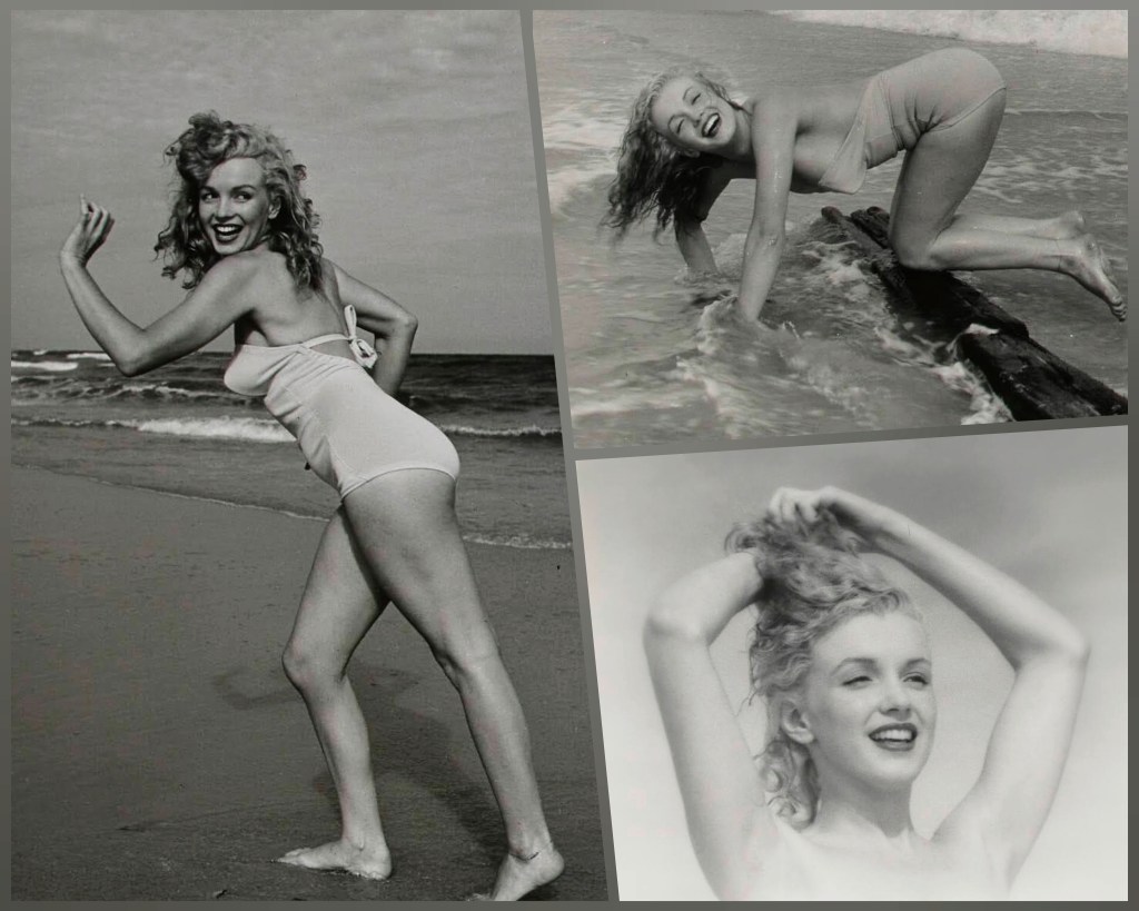 And last for now, three images from a set of five photos by Andre de Dienes, showing Marilyn at Tobay Beach, New York in 1949, which sold for $1,890. Next up, I’ll be exploring Marilyn’s meteoric rise to Hollywood stardom in the 1950s – and you can find all my posts on this auction right here.