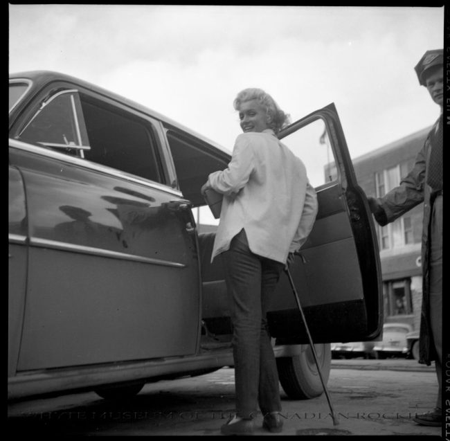 The stuffed bear used in another image of Marilyn – captured by LOOK photographer John Vachon – is also part of the Whyte Museum’s permanent display.