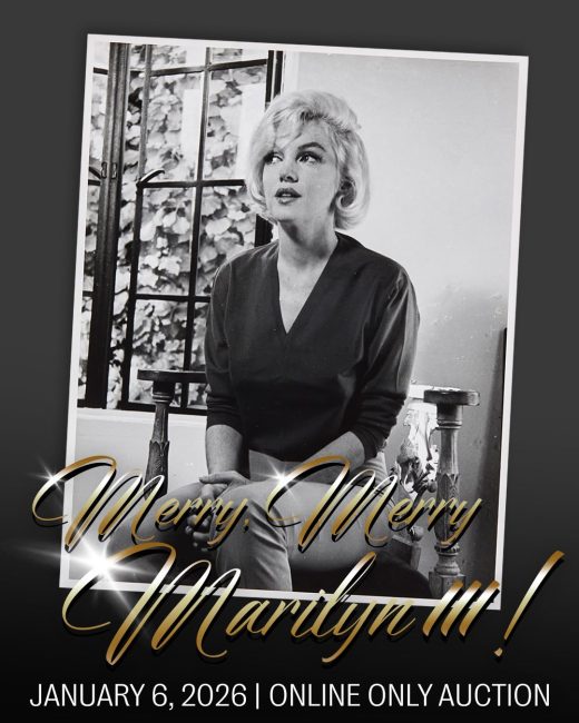 And finally, in what is becoming a festive tradition, the online showcase Merry Merry Marilyn III – featuring documents, photographs, etc. among 135 lots – is now open at Julien’s, with bids closing on January 6, 2026.