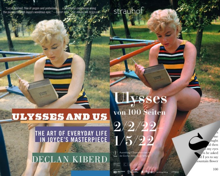 Ulysses wasn’t found among the 430 books in Marilyn’s personal library (see here.) But Eve Arnold’s photo remains synonymous with the 1922 opus, making the cover of Declan Kiberd’s literary guide, Ulysses and Us (2008), and later promoting a centennial exhibition held in Zurich, where Joyce partly wrote his masterpiece.