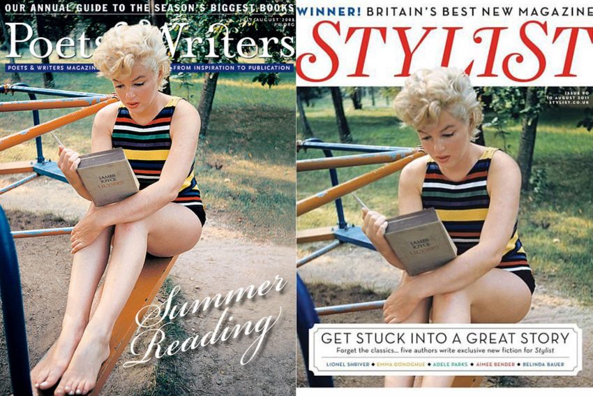 More broadly, the image has been used for the UK edition of Simon Mason’s The Rough Guide to Classic Novels (2008), and on the back cover of Fragments: Poems, Intimate Notes, Letters, a 2010 anthology of Marilyn’s own writing. It has also appeared on magazine covers, including Poets and Writers in 2008, and Stylist in 2011.