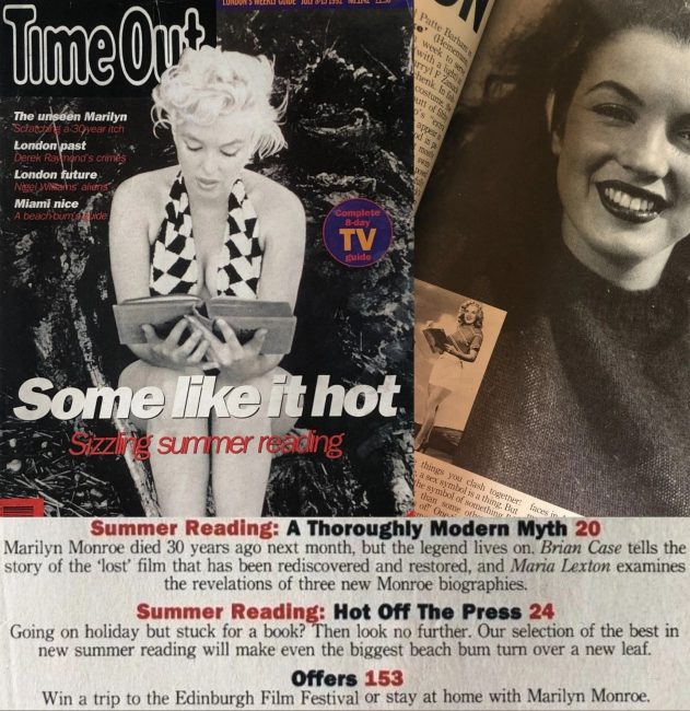 However, it’s not the only Ulysses photo. Marilyn changed her clothes – but kept the book – for another iconic shot on the same day, which made the cover of Time Out in 1992.