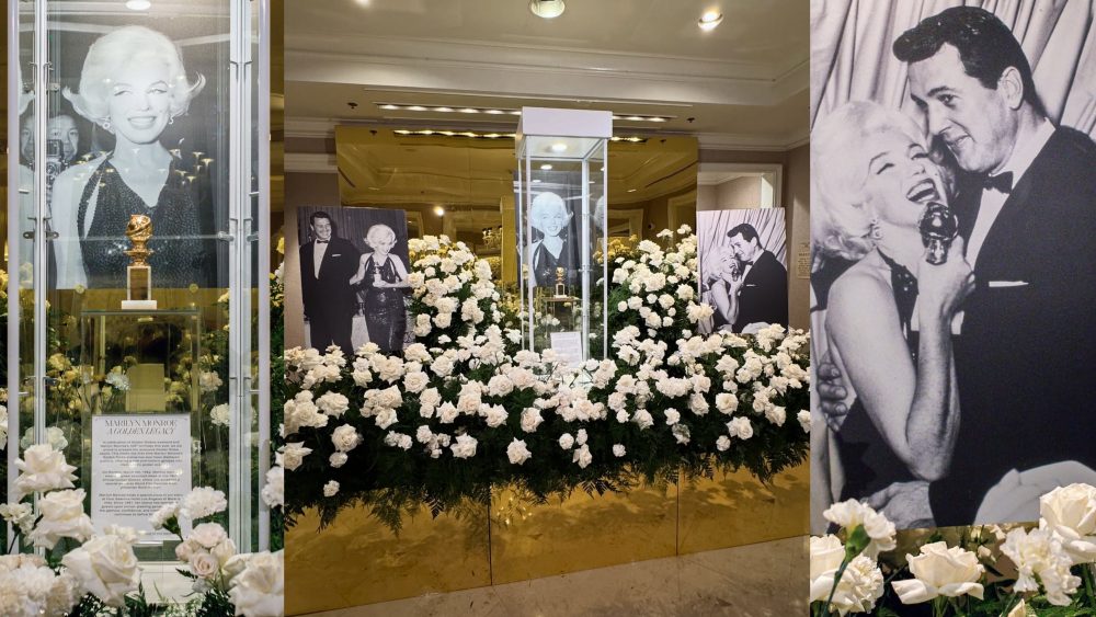 “In celebration of Golden Globes weekend and Marilyn Monroe’s 100th birthday this year, we are proud to present her original Golden Globe, awarded in 1962. Displayed publicly for the first time, with surrounding floral design by artistic director Jeff Leatham, this rare piece offers a historic glimpse into Hollywood’s golden era.”
