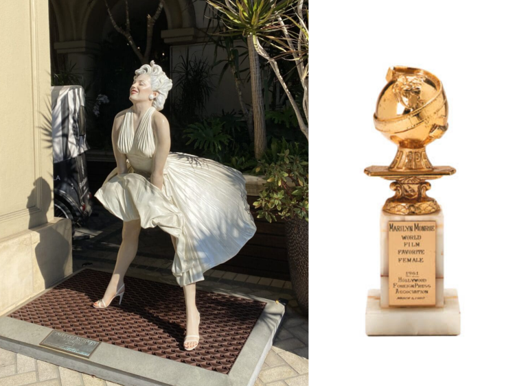 With this year’s movie awards season now underway, Marilyn’s Golden Globe statuette is now on display at the Four Seasons Hotel on Wilshire Boulevard in Beverly Hills, L.A.