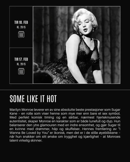 ‘Marilyn 100,’ a centennial retrospective at Cinemateket Bergen in Norway, began last month with The Seven Year Itch, and continues with two more films in February.