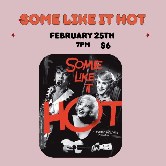 And finally, Some Like It Hot gets another big-screen outing at the Empire Theatre in Livingston, Montana on Wednesday, February 25 at 7 pm, concluding a month-long Rom-Com (Ish) Wednesdays series.