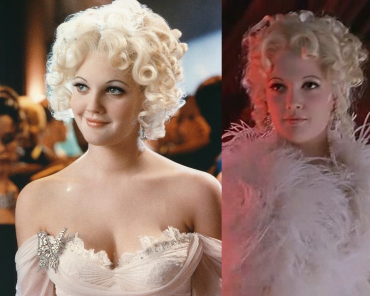 In Batman Forever (1995), Drew played gangster’s moll Sugar – echoing Sugar Kane in Some Like It Hot – with platinum blonde curls and risqué costumes.