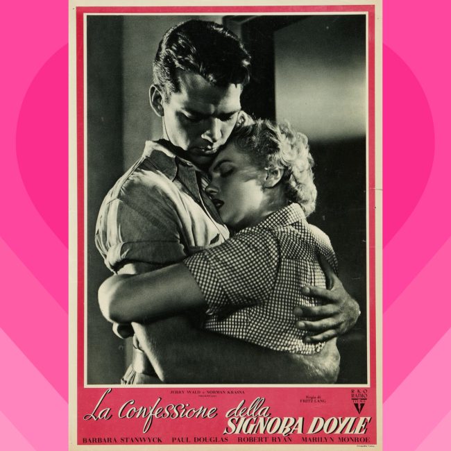 Clash By Night is showing at the Palazzo Epsosizioni in Rome on Wednesday, March 11, at 8 pm, as part of ‘Fritz Lang 50,’ a month-long retrospective for the Austrian-born director. (The film’s Italian title, Mrs Doyle’s Confession, refers to the character played by Barbara Stanwyck.)