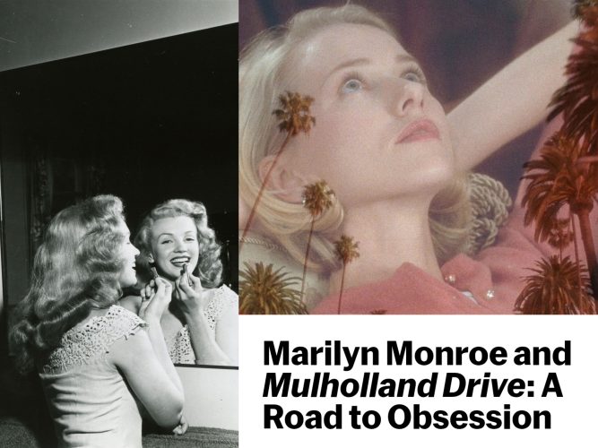 In Mulholland Drive, Betty Elms, played by a then-unknown Naomi Watts, is an aspiring blonde actress who arrives in Los Angeles without a place to live … On this long, unpaved drive, we will find that unfathomable visions want a piece of us. They have a home in our morbid curiosity; they found a place to grow in Hollywood’s dream factory, looking for the beautiful and innocent to embody them before they’re thrown into eternity. No one could save Norma Jeane, and Marilyn will never wake up again. And yet, we keep returning to the darkness of theatres to believe in the greatest fantasy of all …”