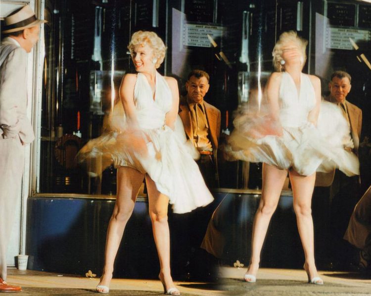 Colour images of Marilyn filming the ‘subway grate scene’ from The Seven Year Itch are featured in Elliott Erwitt: Retrospective, now open at the DSH Gallery in the History Meeting House in Warsaw, Poland until September 20.