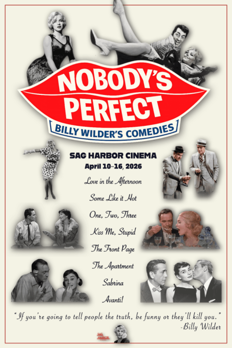 Some Like It Hot is showing at the Sag Harbor Cinema on Long Island, New York, on Friday, April 10 at 7 pm, as part of a week-long series, Nobody’s Perfect: Billy Wilder’s Comedies. The screening will be introduced by Foster Hirsch, author of Hollywood and the Movies of the Fifties.