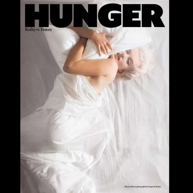 Douglas Kirkland’s iconic 1961 portrait of Marilyn – in vertically rotated form – graces the cover of HUNGER (#38), a bi-annual English style magazine. One of several limited editions, Marilyn’s cover has already sold out in many stores … and thus, happy hunting to all you magazine collectors!