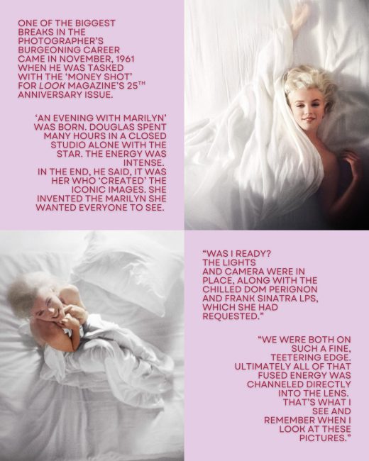 FK: Yes. Everybody always thinks it’s Marilyn Monroe. But the pictures of Marilyn Monroe only became famous much later on as part of a story, ‘How do you want to be remembered 25 years from now?’
