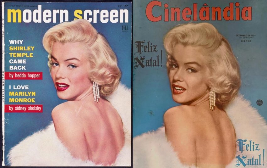 A similar image was recently featured in an Instagram post from Bésame Cosmetics, promoting the ‘1959 Red Hot Red’ lipstick (inspired by Some Like It Hot), although the original photo shows Marilyn wearing a mauve shade.
