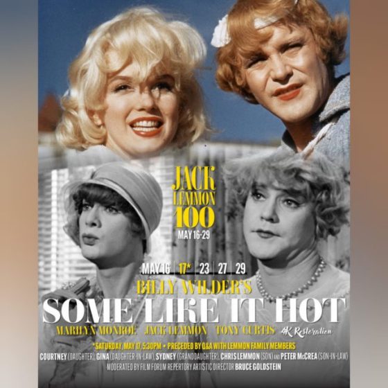 Some Like It Hot is showing at Film Forum NYC on Saturday, May 17, and again on May 23, 27, … More