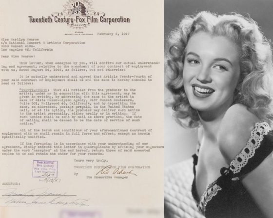 A letter dated February 6, 1947, notifying Marilyn that her 6-month contract at Twentieth Century Fox had been renewed for … More