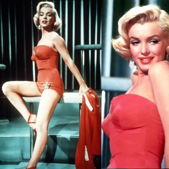 Marilyn’s bejewelled red bathing suit, designed by Travilla for the fashion show scene in How to Marry a Millionaire, is … More
